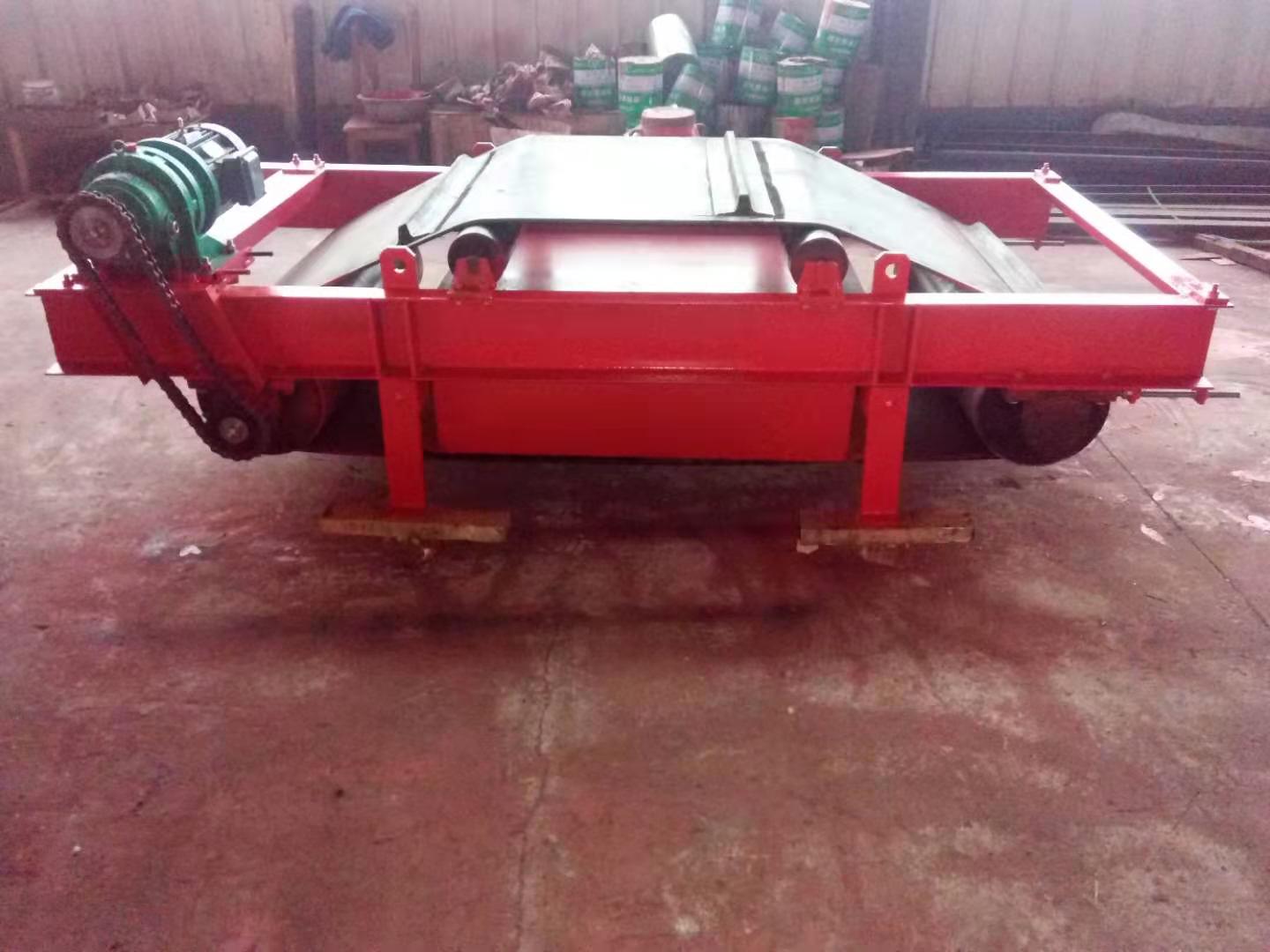 RCDC系列風冷自卸式電磁除鐵器,是在RCDA系列風冷懸掛式電磁除鐵器的基礎上增加了驅(qū)動電機、滾筒、帶刮板的卸鐵膠帶等組成的卸鐵機構。在工作過程中卸鐵機構自動將卸鐵皮帶上吸附的鐵磁性物質(zhì)拋到除鐵器以外的集鐵箱內(nèi),無需停電人工清理,實現(xiàn)了除鐵自動化, 在鋼鐵廠、水泥廠、多用于礦渣除鐵和保護輥壓機、立磨、破碎機等重要設備。